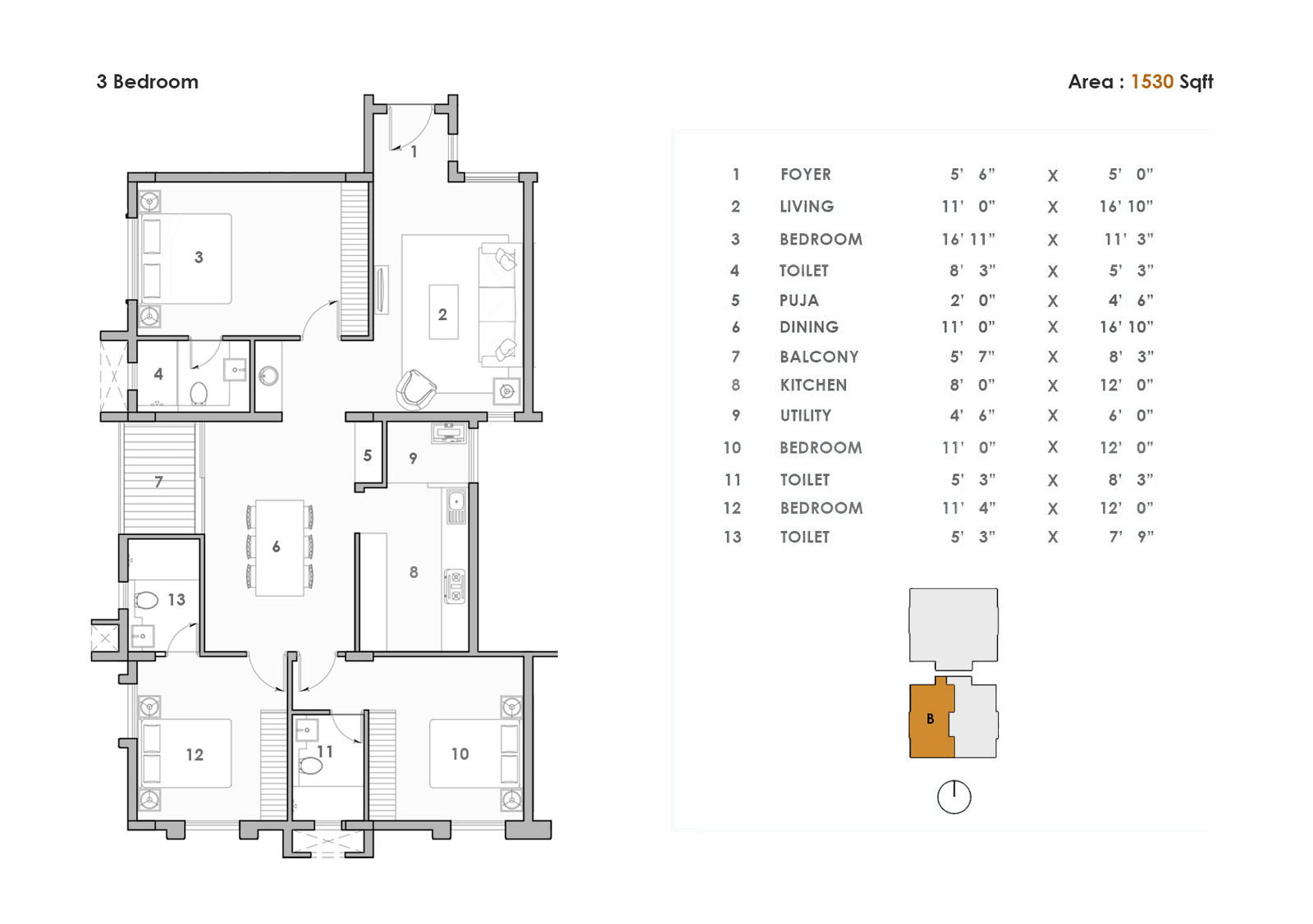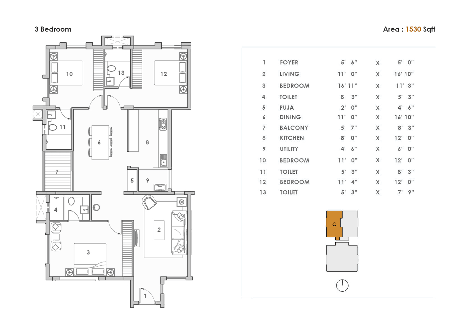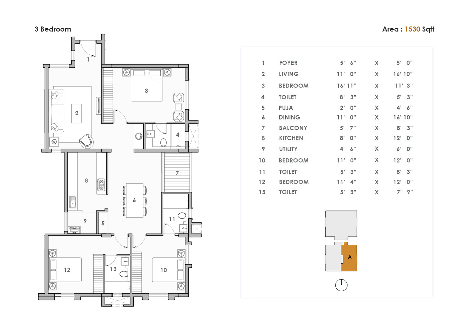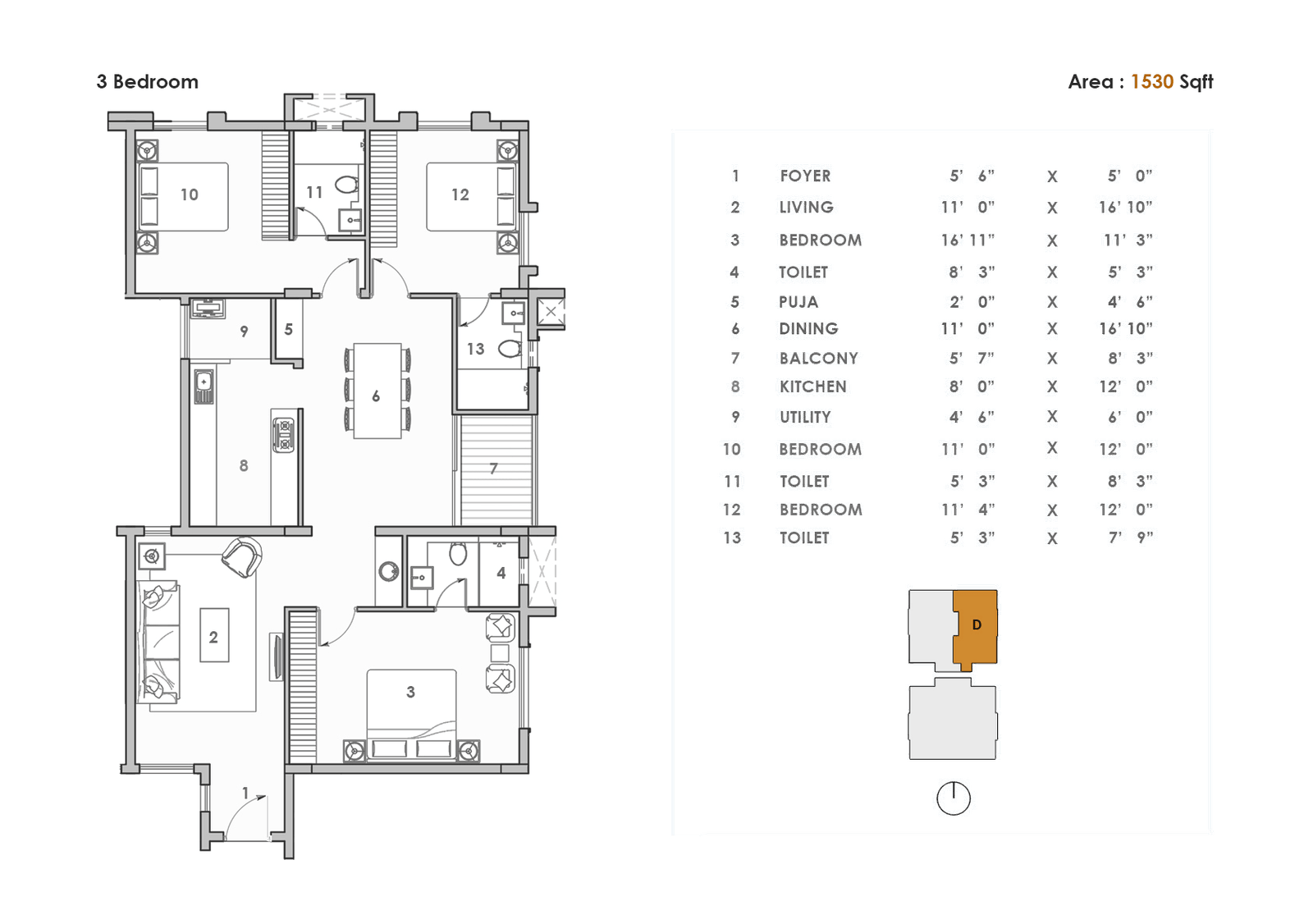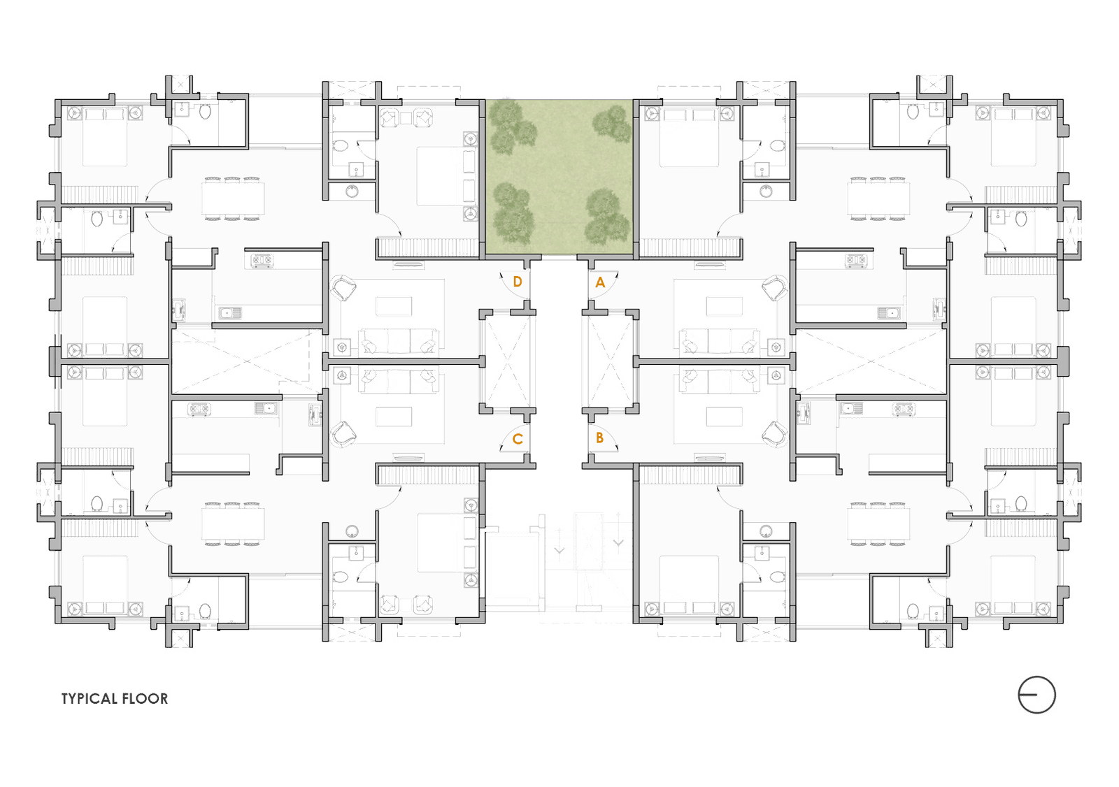 Typical Floor (Second| Third| Fourth| Fifth) – 4 units each 3 Bedroom | 1530 sq.ft